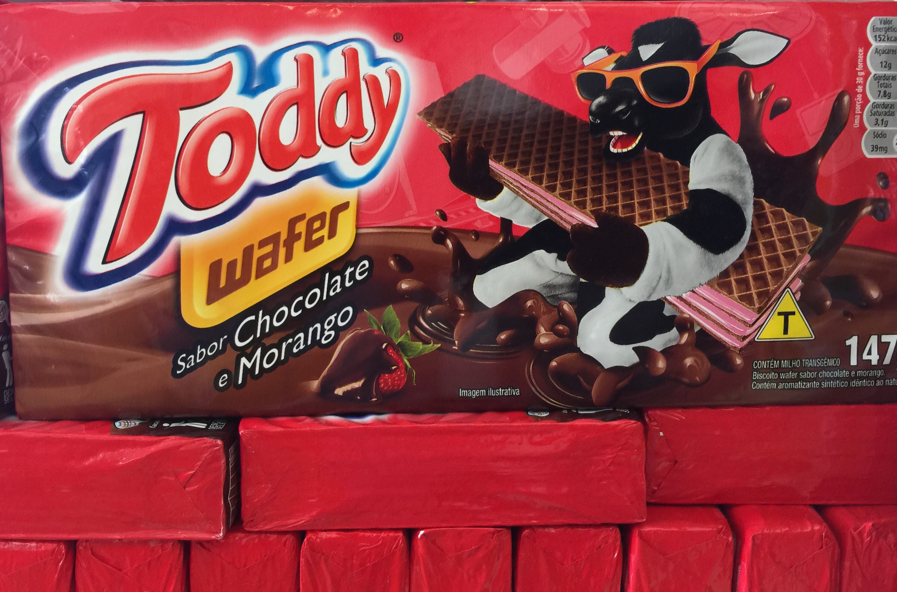 One part of not quite fitting in is having a difficult first name. First, they see the ‘o’ and want to pronounce it like the English word ‘awe’. Second, Brazilians have a very hard time ending a syllable with a stop consonant, as at the end of ‘Todd’. They will insert a vowel after the consonant to “fix” the word. Since the inserted (epenthetic) vowel is virtually always an /i/ or /e/, and since most Brazilians pronounce ‘di’ as if it were ‘dji’, this means that most Brazilians will say my name as an English-speaker would pronounce ‘Tawjee’. I’m sure that my attempts to correct people are undermined by everyone’s common experience with this brand:
